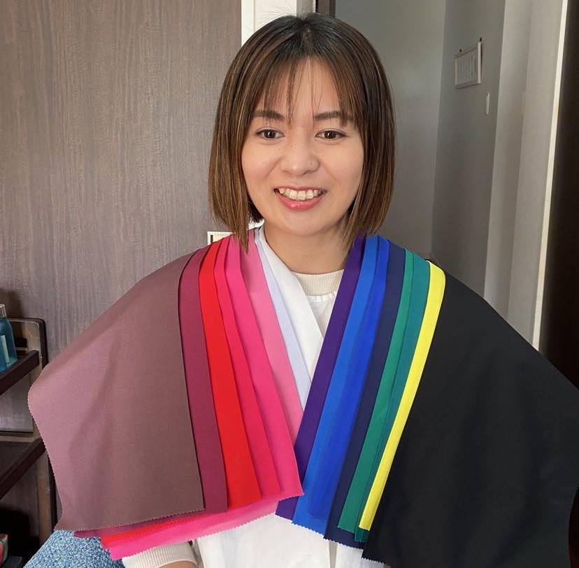 色のついた布を顔付近に当てるだけでびっくりするくらい自分の顔色やそこから見える表情が違うんです。何より診断中から心が前向きになっていくのを感じました。 今までは外さないようにとモノトーンばかり着ていましたが、診断後は自分に似合う色をしっかり体感で分かったので、自信を持って購入することができています♪